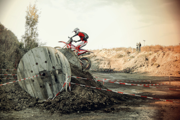 Steile Auf- und Abfahrten in der Kiesgrube, künstliche Hindernisse und ein anspruchsvoller Wald mit liegenden Bäumen und rutschigem Untergrund, vordert von den Fahrern absolutes Fahrkönnen.